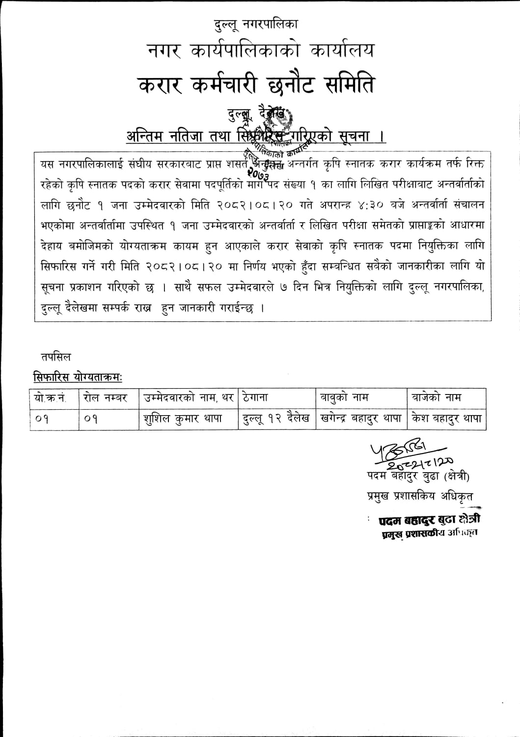 दुल्लू नगरपालिका ,नगर कार्यपालिकाे कार्यालय दुल्लू ,दैलेख