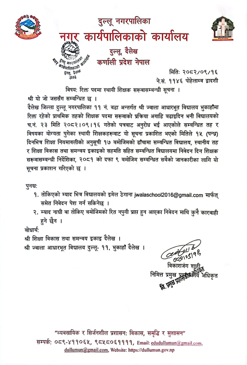 रिक्त पदमा स्थायी शिक्षक सरूवा सम्बन्धी सूचना
