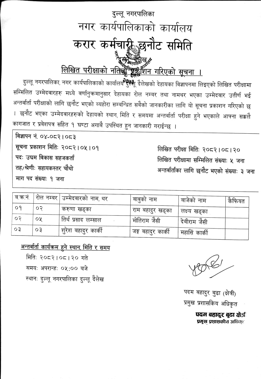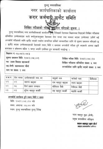 लिखित परिक्षाकाे नतिजा प्रकाशन सम्बन्धमा