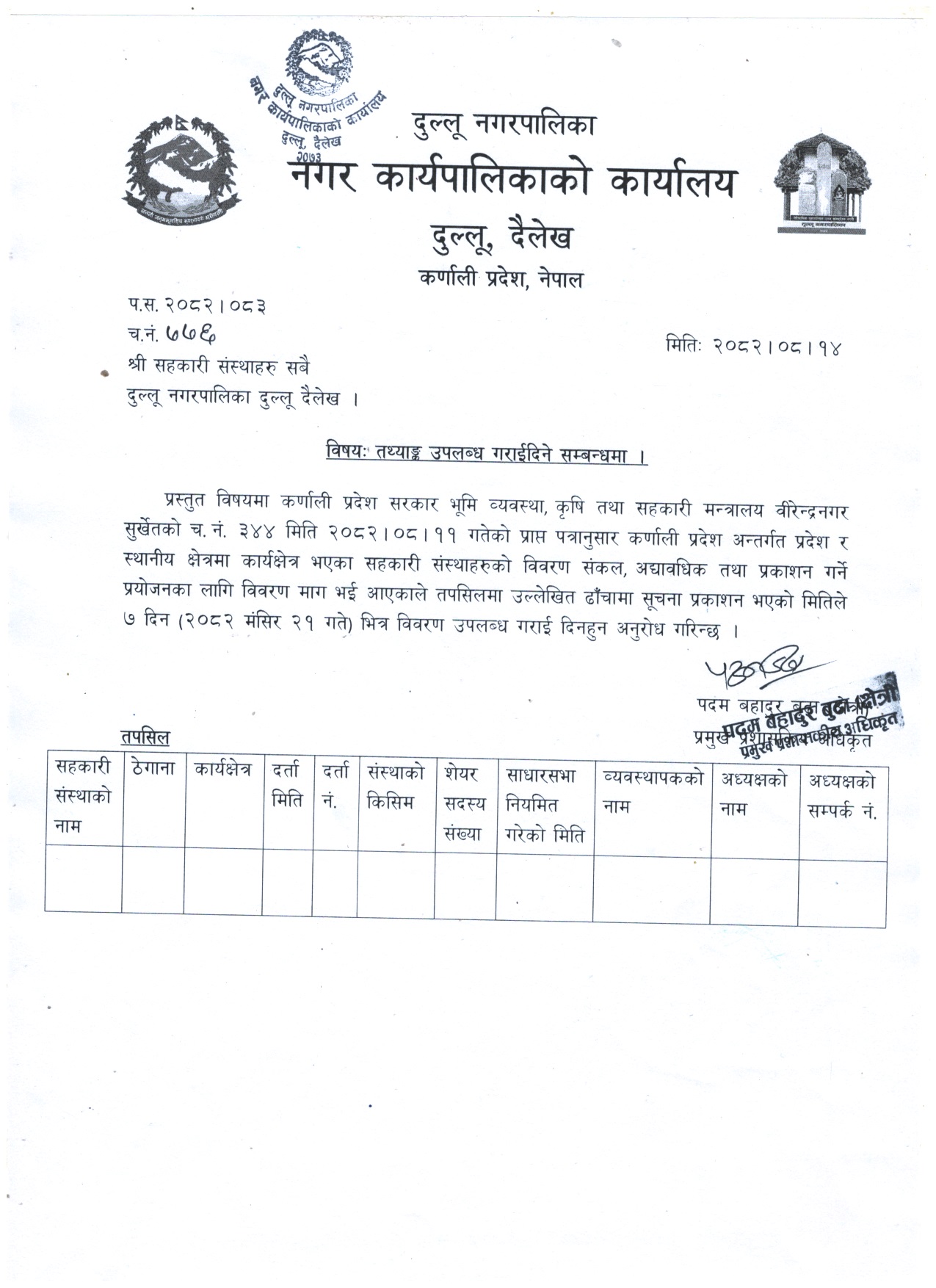 तथ्याङ्क विवरण उपलब्ध गराईदिने सम्बन्धमा