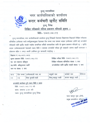 लिखित परिक्षाको नतिजा प्रकाशन