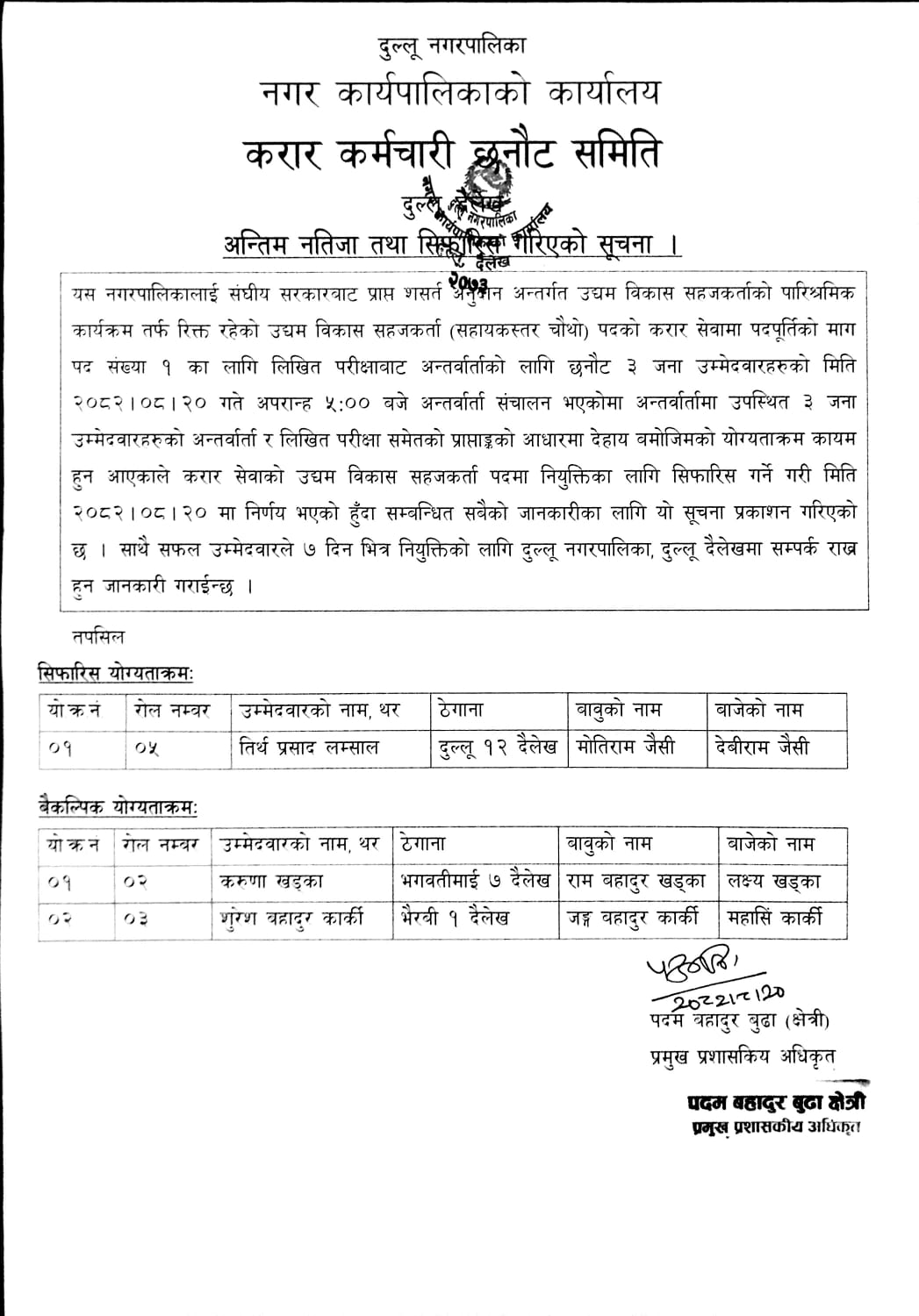 दुल्लू नगरपालिका ,नगर कार्यपालिकाे कार्यालय दुल्लू ,दैलेख