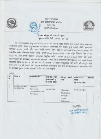 » वोलपत्र स्वीकृत गर्ने आशयको सूचना